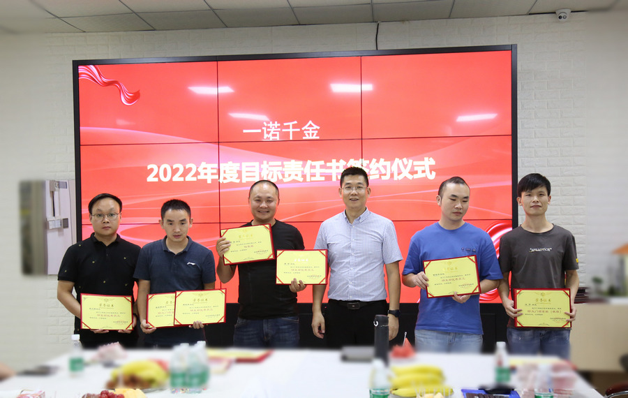 会议还举行了2022年度目标责任书签约仪式,各事业部团队与驰通达集团签订了2022年度业绩目标责任书。并且各团队负责人以积极饱满的精神状态宣读了誓词,庄严承诺一定要达成2022年全年的工作目标,确保公司在智慧安防、智慧消防、智慧养老领域保持领先地位。